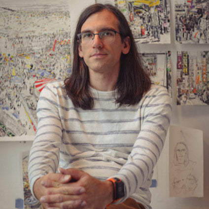 Nick Golebiewski, whose paintings capture the vibrancy of New York City’s urban culture and everyday life.